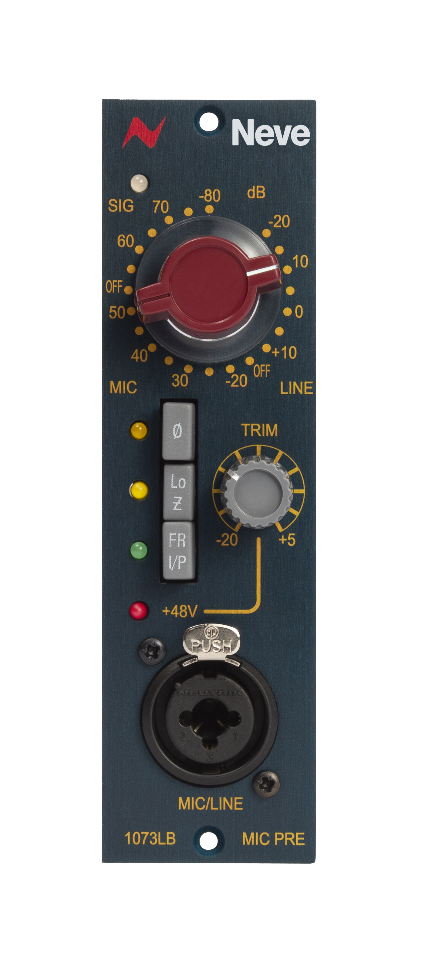 The new Fine Trim control lets you squeeze the maximum level of sparkling clean signals or crank the gain for some Revolution distortion. The 1073LB Preamp's smart Audio Processing Input design and Lunchbox Insert architecture allows you to create a classic Neve 1073 channel strip when used with a Neve 1073LB Series EQ.