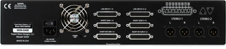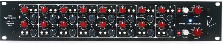 The 5059 features 16 channels with individual level, pan, inserts, stereo-2 sends, and master texture controls, providing easy integration with outboard equipment, complete control for two separate stem mixes, and the ability to dial in analogue mojo in two modes.