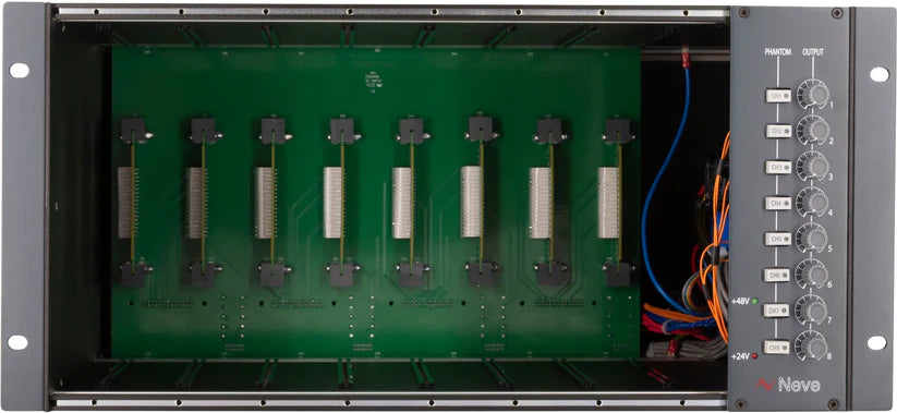 The Neve 1073/1084 8-Module Rack is a 5U unloaded rack capable of housing eight 1073 Classic, 1073N, 1084 Classic and/or 2264A Classic modules vertically. Includes PSU, 48V, and Gain Control.