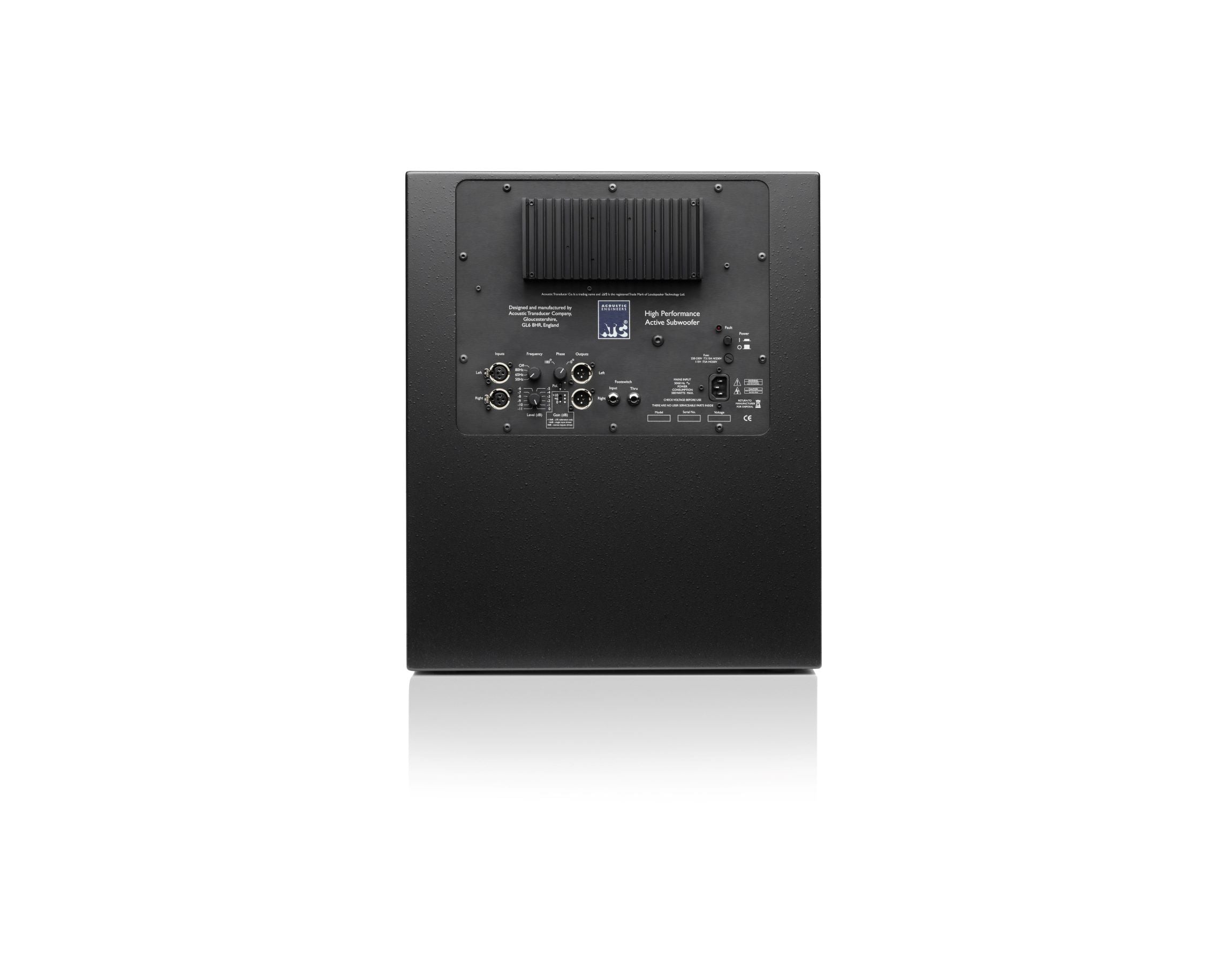 Low Pass Filters: 50Hz, 65Hz, 80Hz, 320Hz. (-6dB, 4th order Linkwitz Riley)