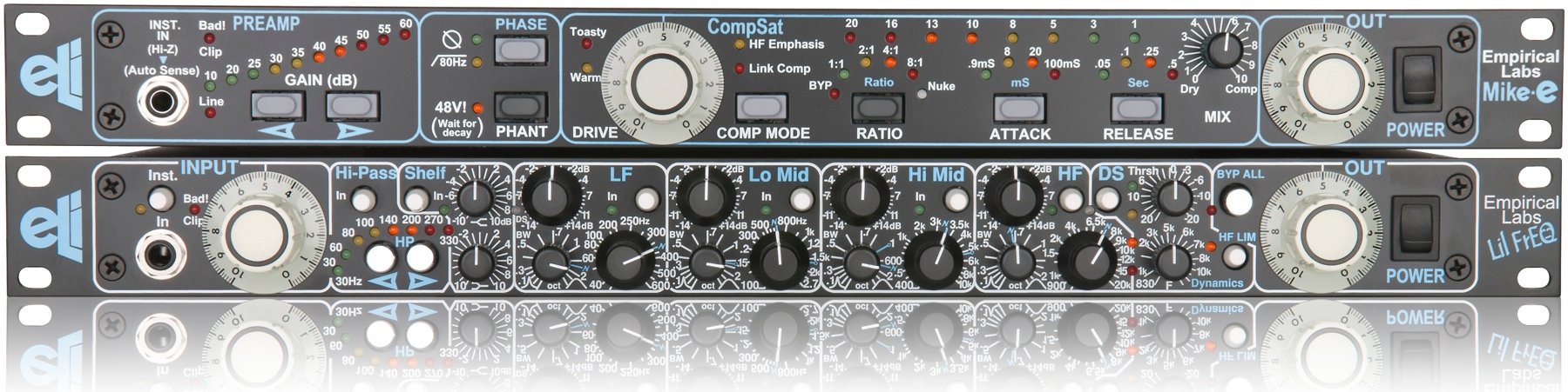When the engineering team at Empirical Labs sets out to build a microphone preamp, you can be sure it’ll deliver spectacular sound, be effortless to work, and will provide features unlike any other device in its class. To that end, we proudly present Mike-E, a high performance transformer-coupled mic preamp with a noise floor far below any microphone’s self noise, combined with a one-of-a-kind compressor/saturator circuit that delivers classic knee compression as well as versatile tonal ‘coloring’ that can replicate many of the best characteristics of vintage analog recording equipment.