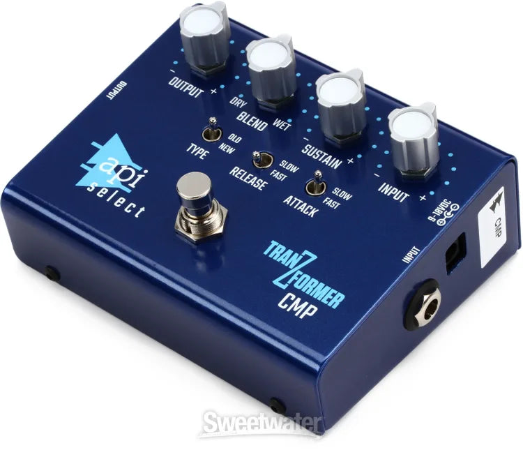The TranZformer CMP puts studio-precise dynamics processing right at your feet. This compressor pedal's Input knob yields +9dB to +30dB of gain; more gain equals more compression. The Sustain knob determines the amount of gain reduction; higher levels lower the threshold for more compression. The Output knob delivers -inf. to 0dB of level control; fully clockwise exhibits 0dB (zero level cut). You also get Fast/Slow Attack and Release switches that offer 1ms/10ms for attack and 300ms/1s for release. The guitarists here at Sweetwater have found the Blend control to be one of the TranZformer CMP's most useful features, enabling you to dial in hyper-transparent compression in any application.