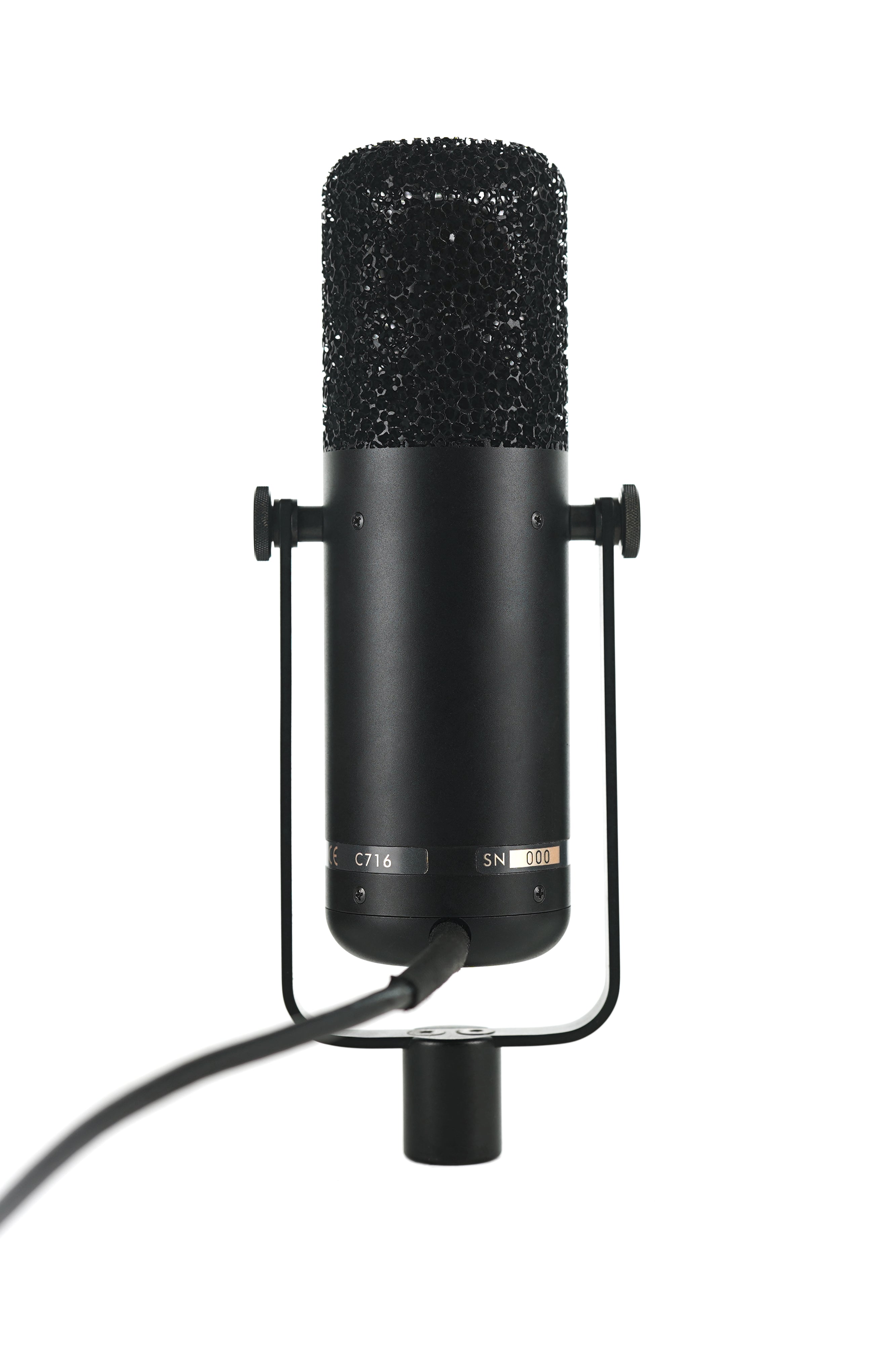 The C716 features a cardioid version of the large dual-diaphragm capsule used in Josephson’s C700 series, with a 5 micron evaporated gold diaphragm. The head grille uses Josephson’s patented hard metal foam structure welded to the housing tube, instead of wire mesh or perforated metal. No other structure is needed, so internal reflections are randomized for clean, detailed sound pickup. The entire housing, circuit board, capsule and all its internal parts are made by Josephson in the USA. The microphone features a hard matte black chrome finish for durability in studio use.