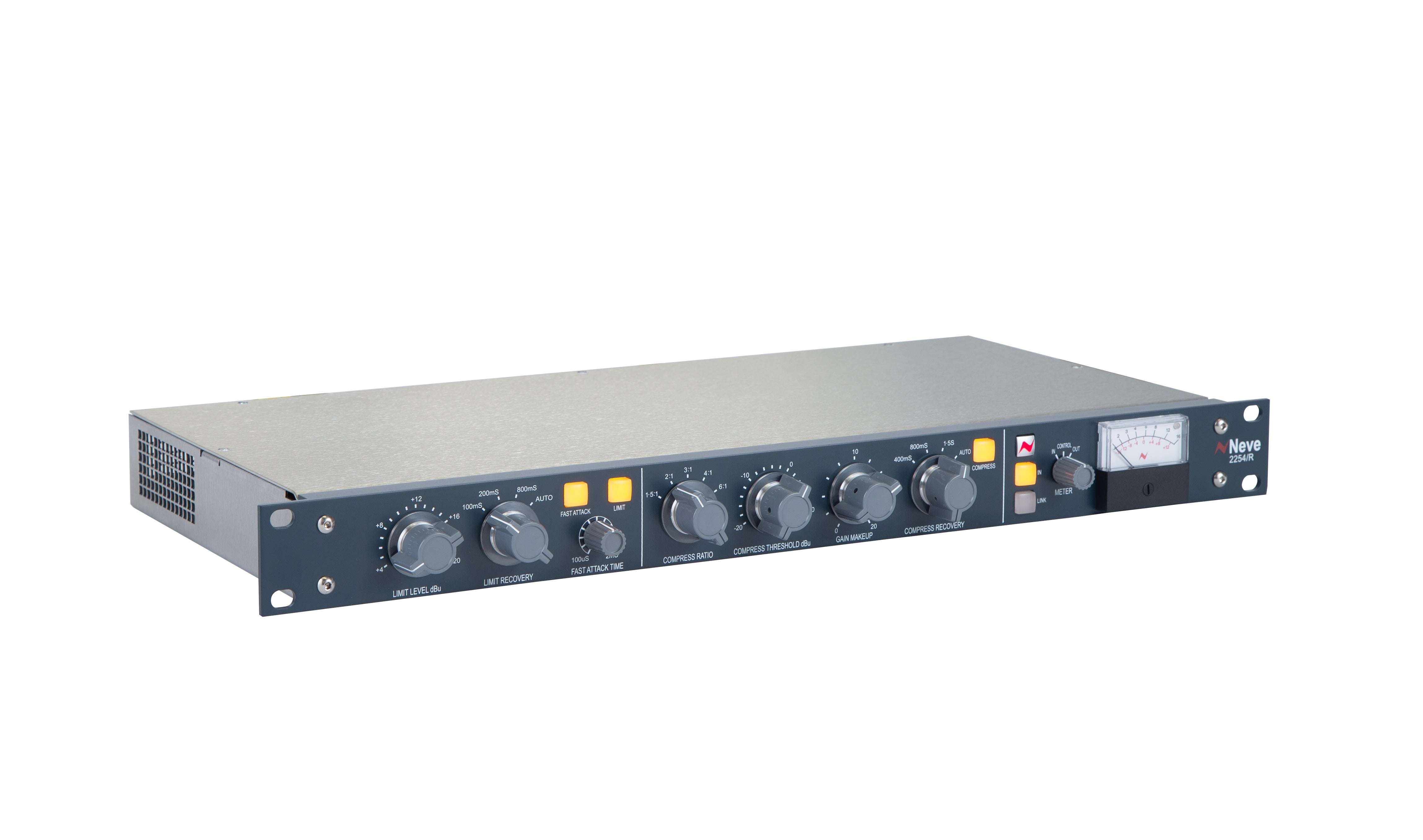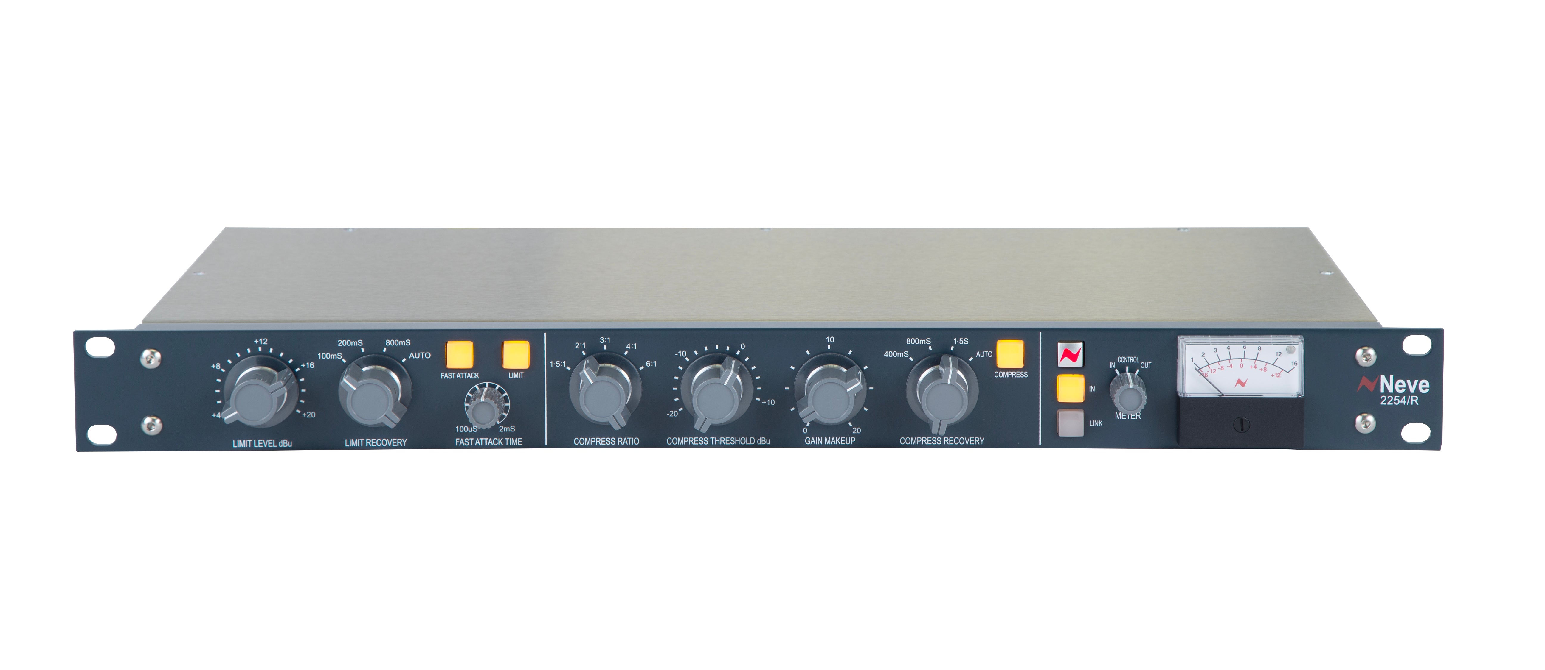 Additionally, the limiter section features a fixed 5ms default slow attack and an optional fast attack mode, with continuously variable attack speeds between 100ms and 2ms. The 2254/R’s compressor section includes a ratio control with five settings (1.5:1. 2:1, 3:1, 4:1, and 6:1), a –20dB to +10dB threshold control, gain makeup, and recovery control with 400ms, 800ms, 1.5s, and AUTO settings. Whether you’re looking to subtly shape the dynamics of a track or aggressively smash them for colorful, pumping compression, the AMS Neve 2254/R has you covered.
