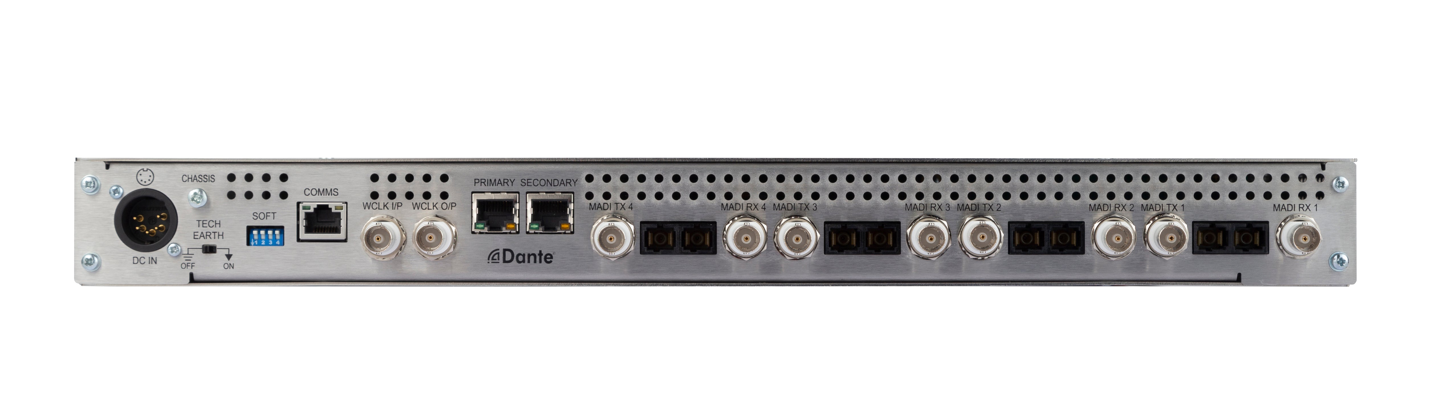 • Converts 255 channels of Dante Rx to 256 channels of MADI Tx and vice versa