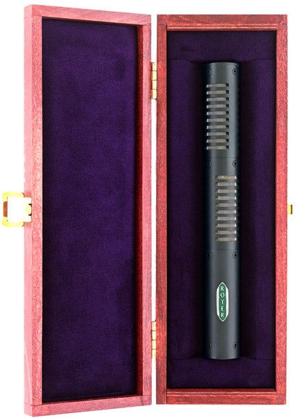 The SF-12 stereo coincident ribbon microphone combines high quality audio performance with outstanding stereo separation and imaging. It is a modern ribbon design with no audible diffraction effects or cavity resonance. An SF-12 is actually two matched ribbon microphones placed one above the other; each aimed 45 degrees from center in the classic Blumlein configuration. The frequency response is excellent regardless of the angle of sound striking the ribbons and off-axis coloration is negligible.