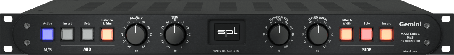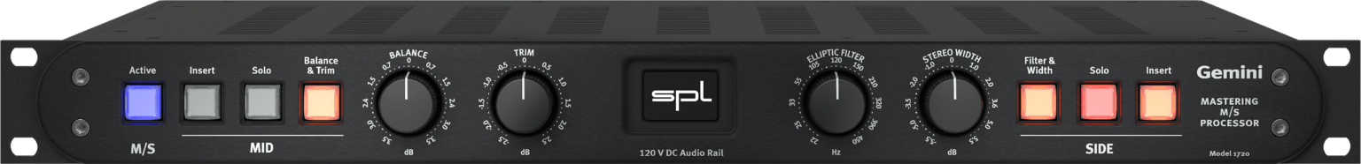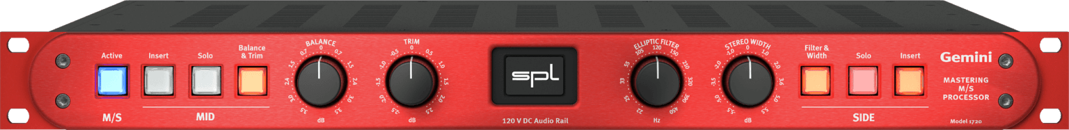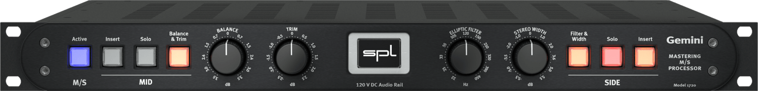 The SPL Gemini is an M/S processor meant for mastering applications. The unit is both an M/S encoder and a decoder, allowing you to monitor the mids and sides in solo.