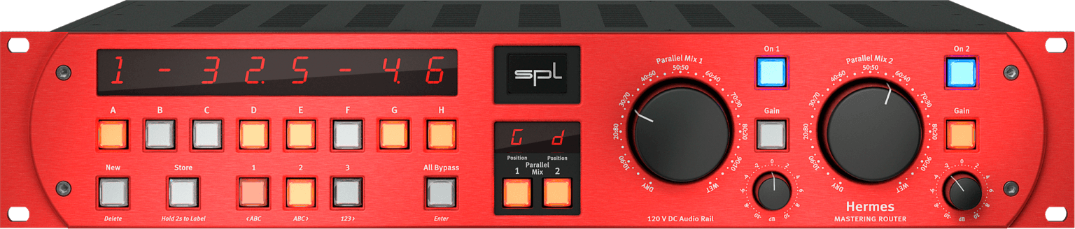All the routing is handled internally, with passive gas-coupled and gold-plated relays. This results in fidelity throughout the chain, which is important for mastering applications. All active electronics, such as I/O stages and parallel mix stages, utilize the same 120V rail technology found on SPL's mastering grade equipment—technology renowned for its ability to deliver high headroom.